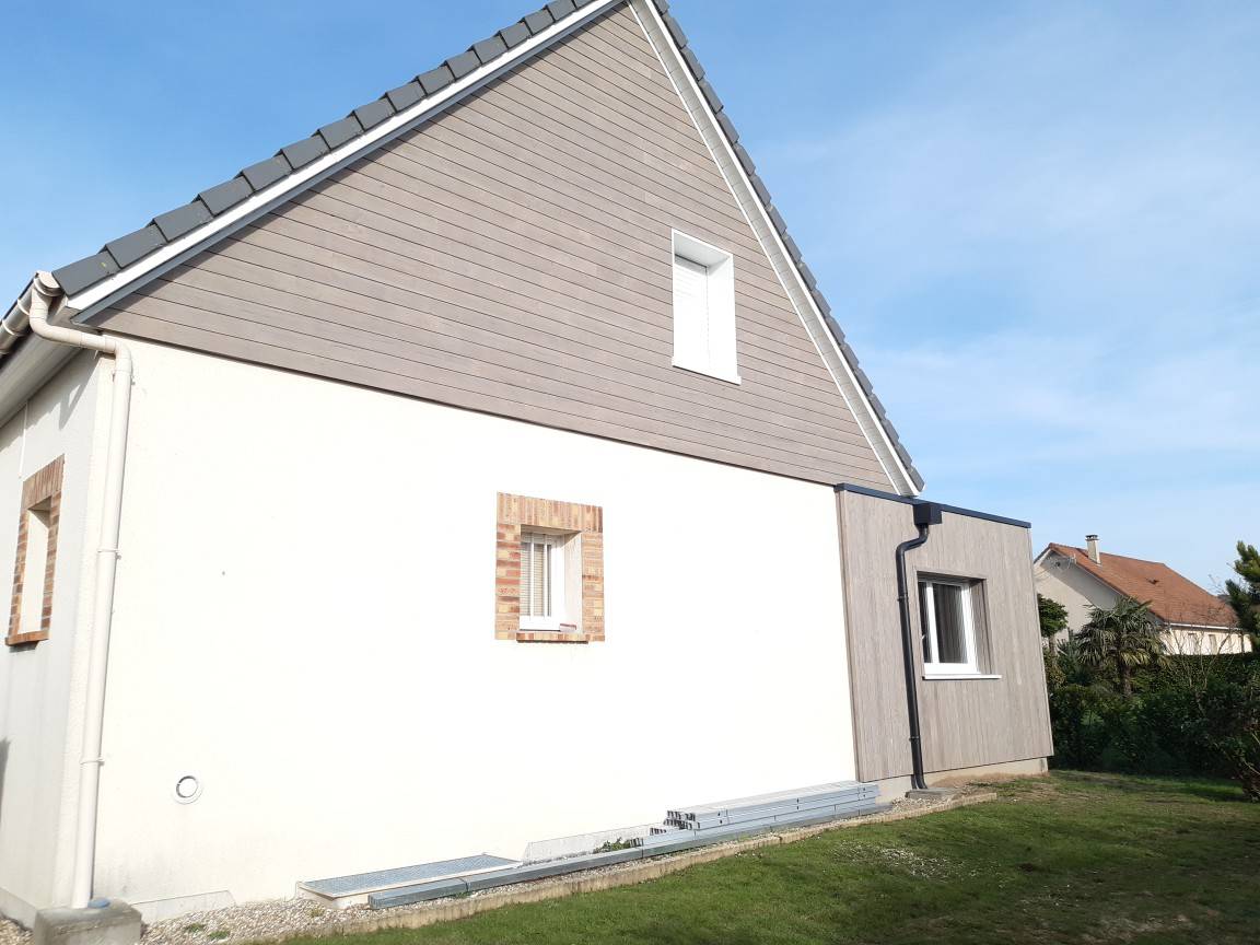 Sur cette construction, nous avons harmonisé l'agrandissement avec le bardage de la maison.