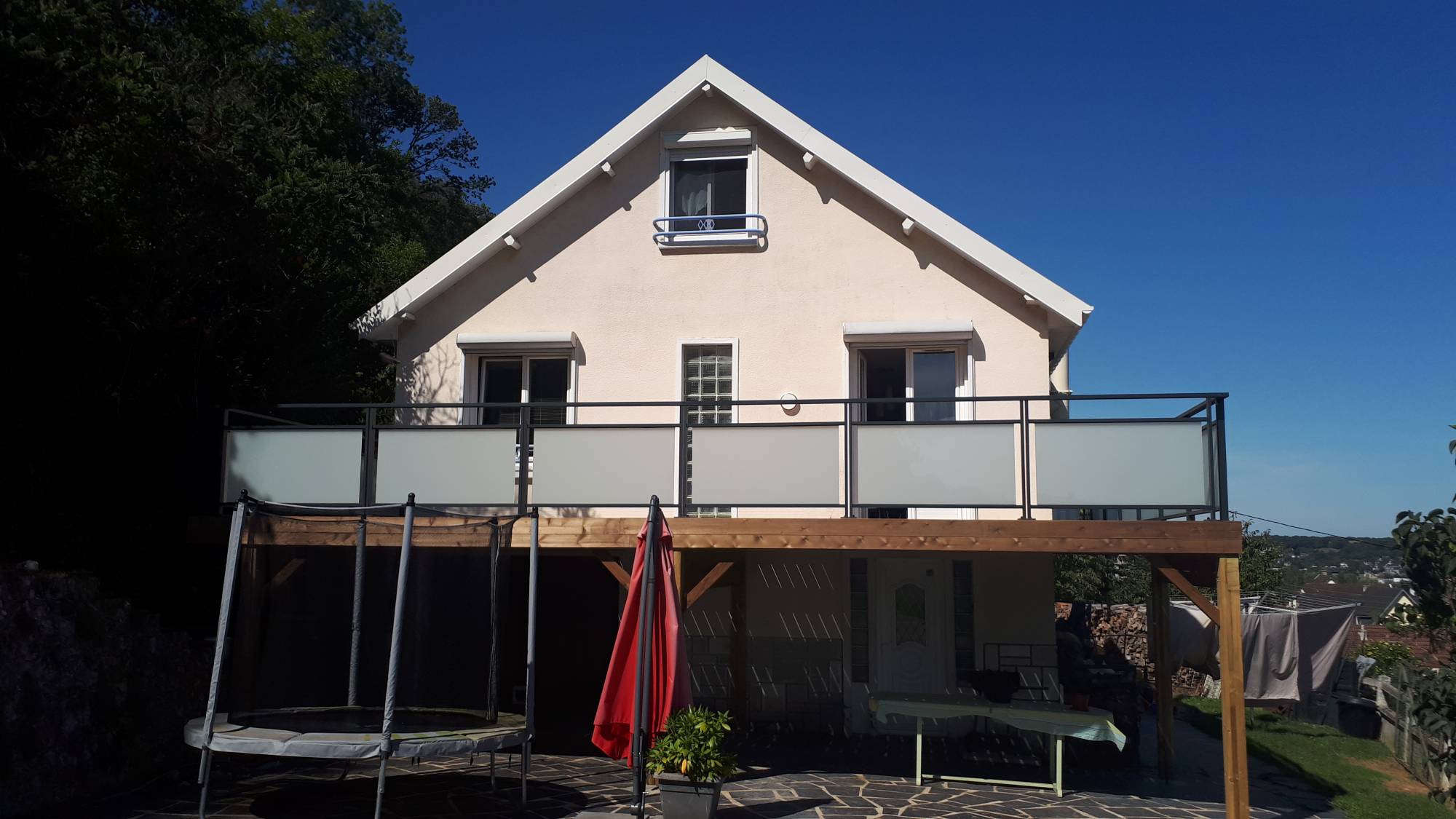 vitrage opaque et aluminium laqué RAL 7016 avec fixation sur terrasse.