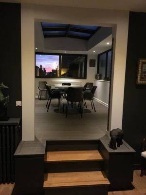 A l'intérieur, c'est un parquet en chêne de coloris gris & épuré. Résultat très épuré comme vous pouvez le constater sur la photo de finition.