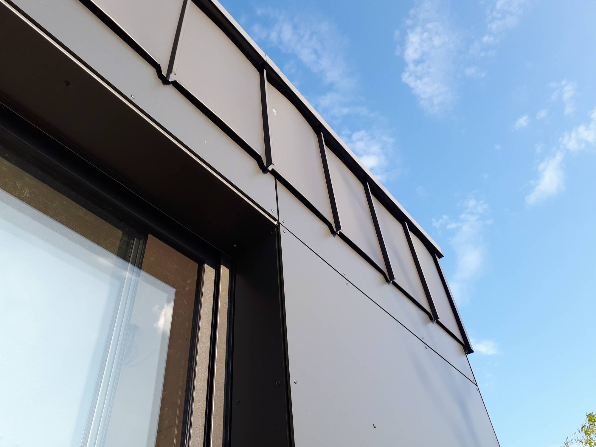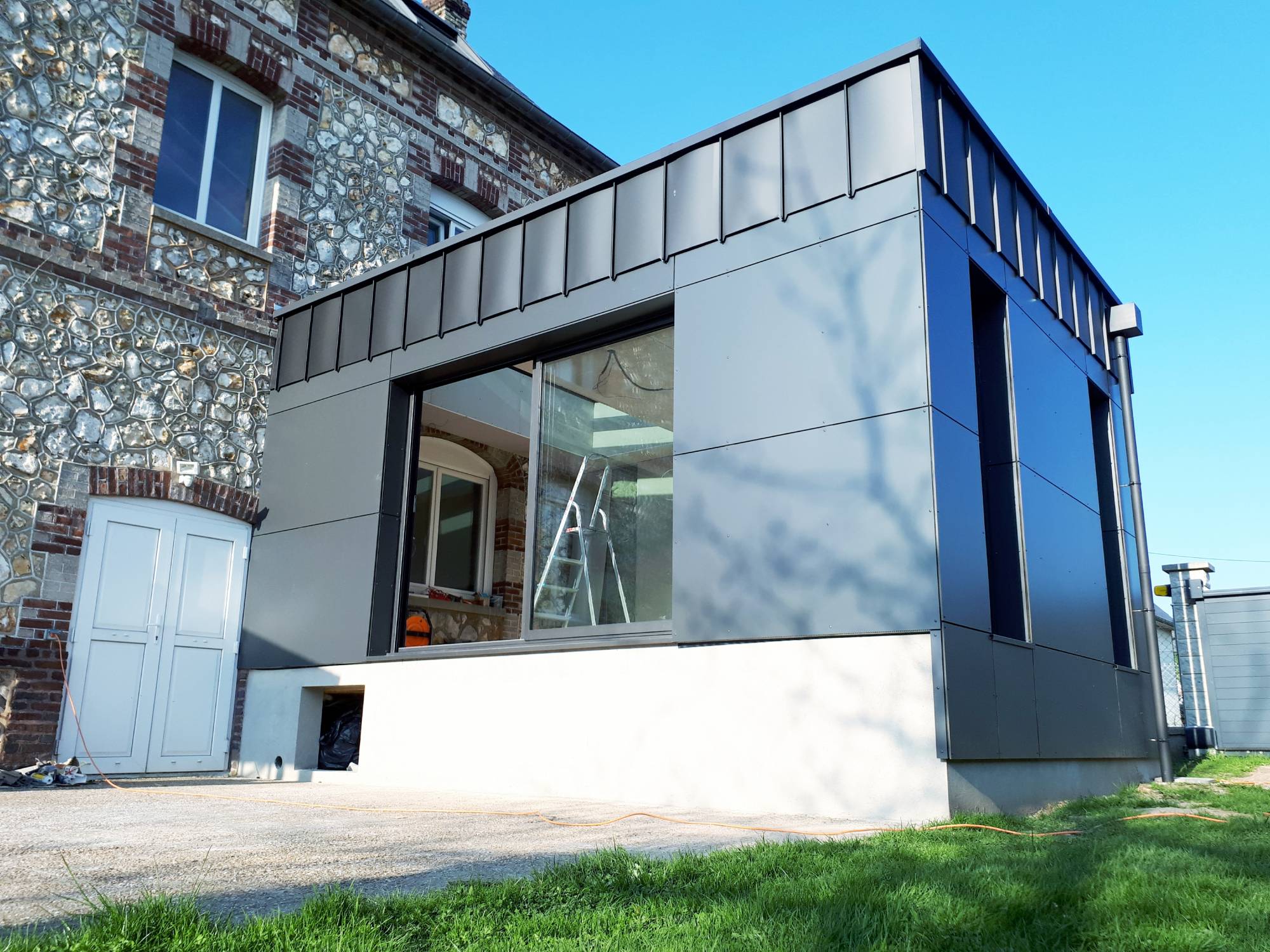 Roger entreprise située à proximité d'Yvetot vous propose l'habillage bandeau zinc joint debout sur votre extension en bois.