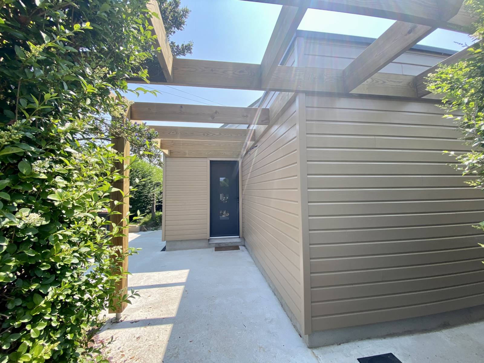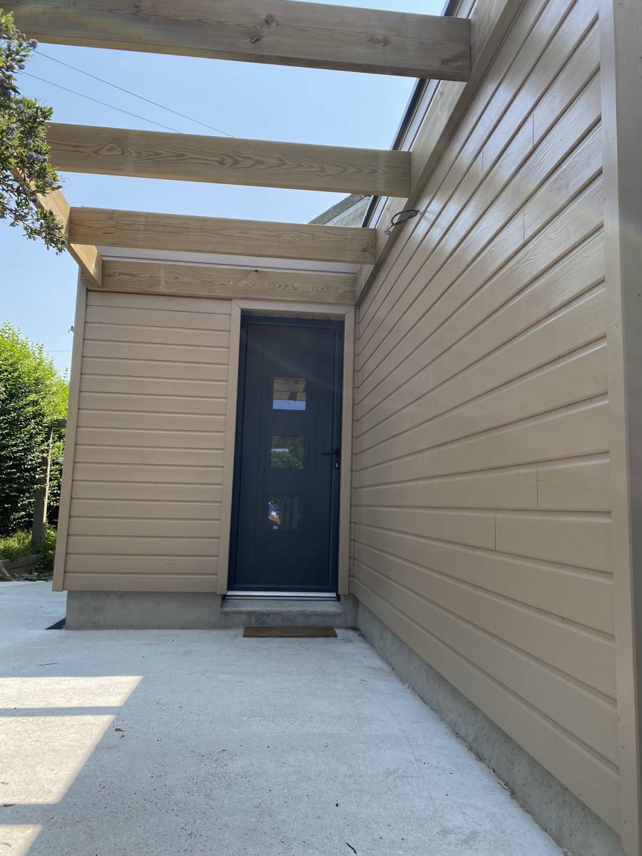 Sur ce projet, nos clients souhaitaient créer une chambre supplémentaire, une entrée et pour ce protéger une pergola au pourtour de l'extension.