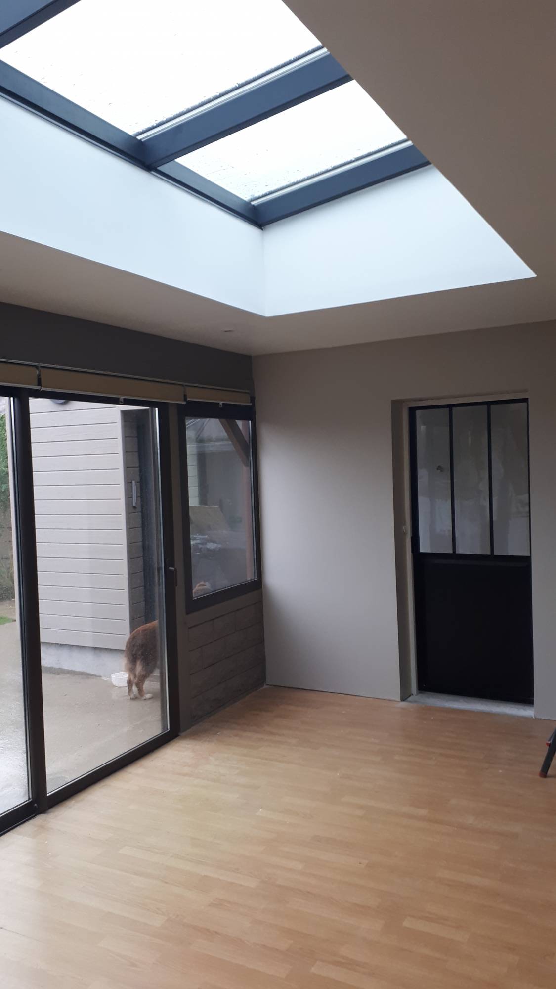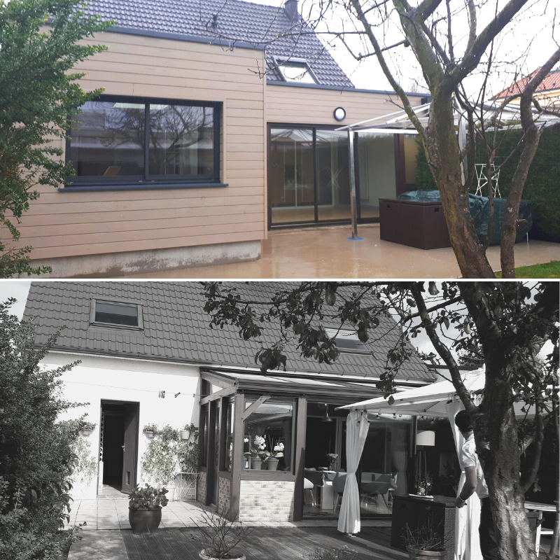 Nous avons modifié le toit de l'ancienne véranda ossature bois avec une verrière, puis prolongé l'ensemble avec une extension bois.