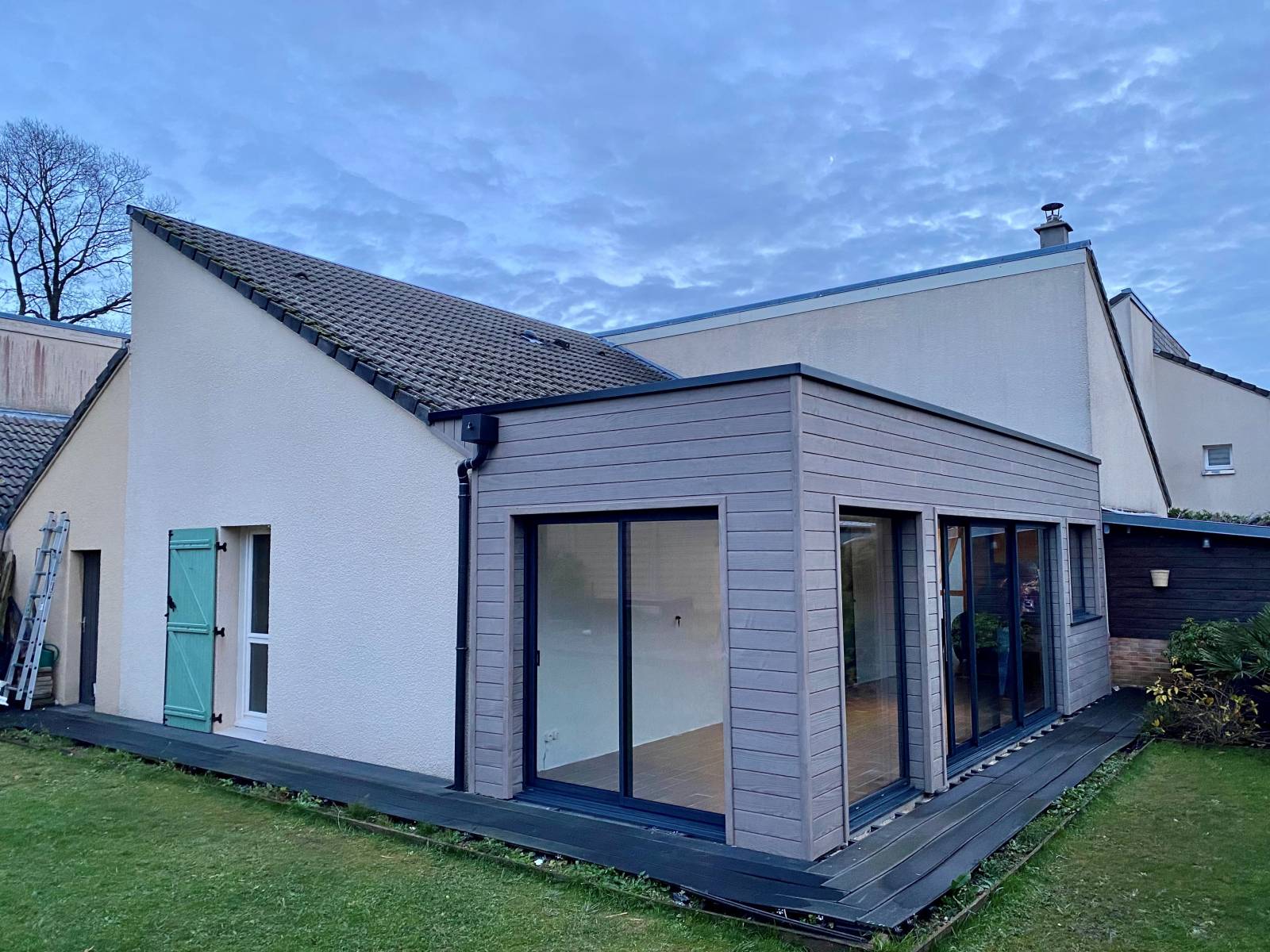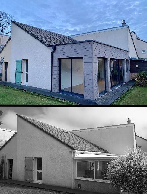 Depuis plusieurs années, nous nous sommes spécialisés dans l'extension de maison en bois. Comme vous pouvez le voir sur ces photos, nos clients ont souhaité supprimer leur vieille véranda tout en gardant un maximum de luminosité et profiter d'un confort thermique plus approprié.